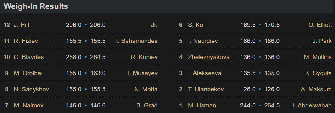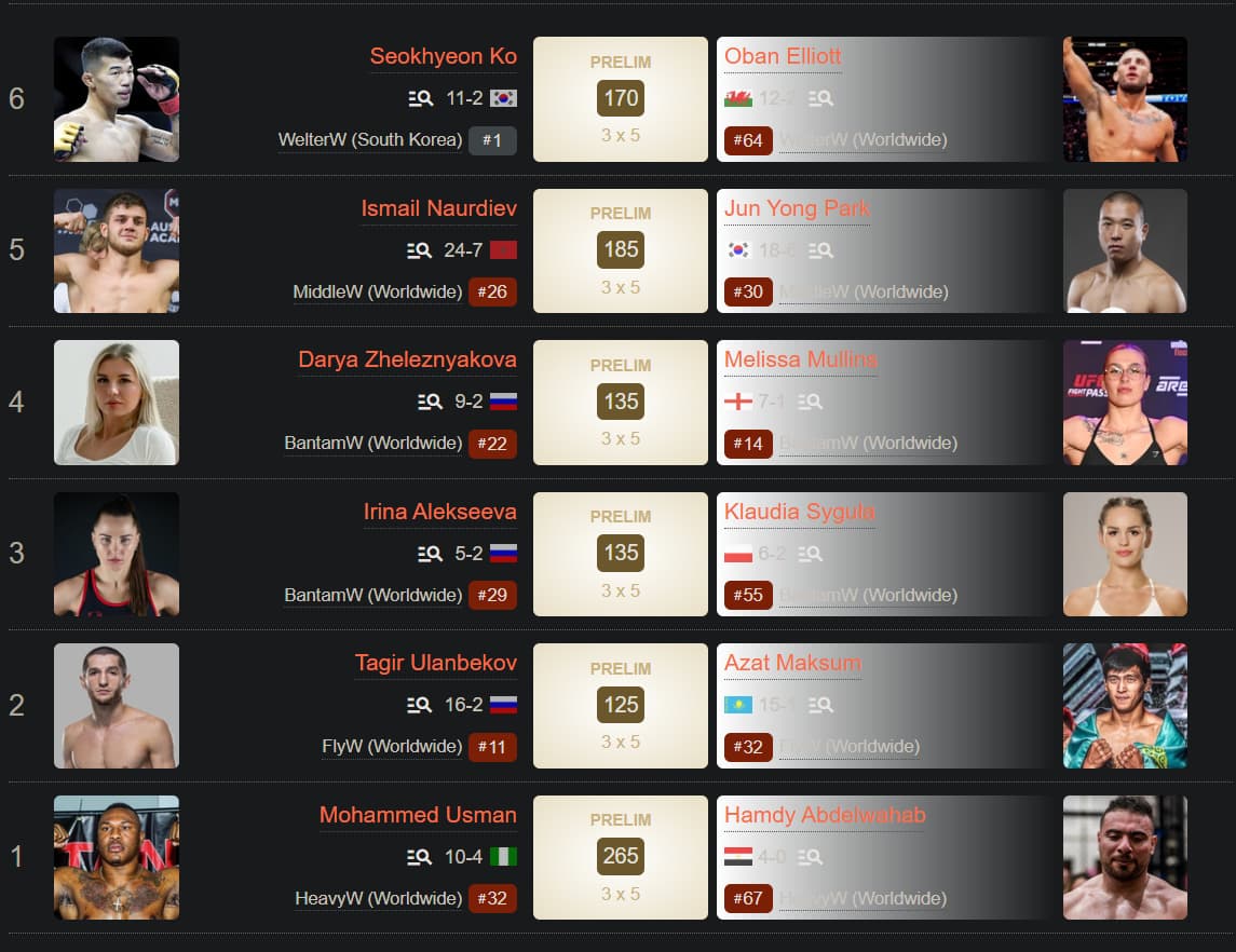 Card looks pretty meh on paper. But that could be because I haven’t followed MMA closely for several years until recently. I have zero clue who 90% of these fighters are. Looks like only 4-5 top 10 fighters on the entire card. Sad. That said, sometimes the cards that look shit to average on paper end up being the most exciting ones.